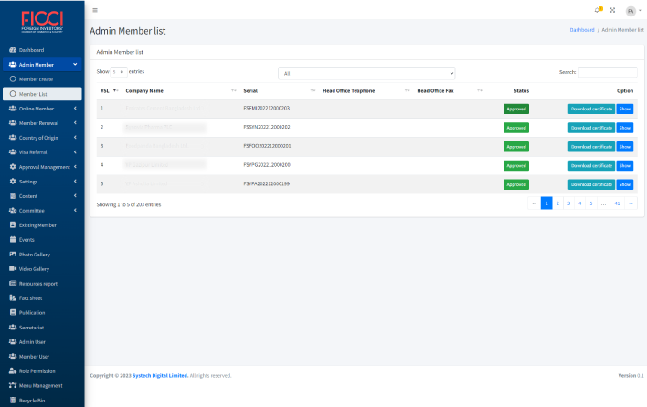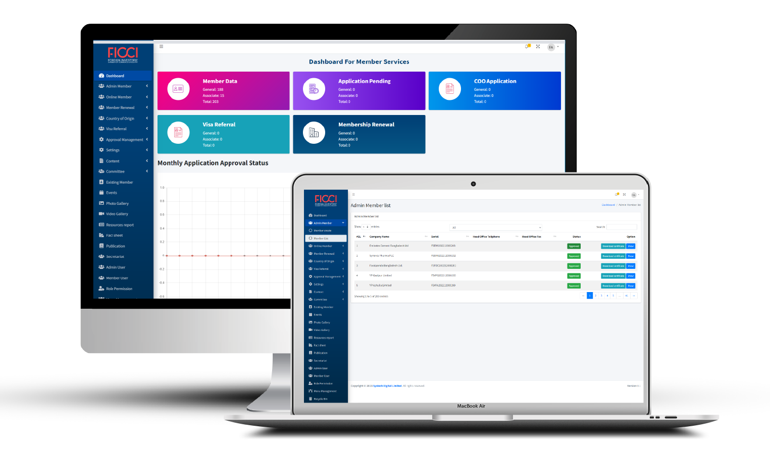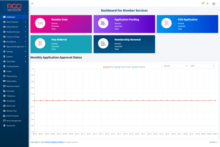 Roll-based user authentication system, Member dashboard (Web-based), Information edit/Change management, Membership renewal Management, and Document management system for membership data & Reporting.