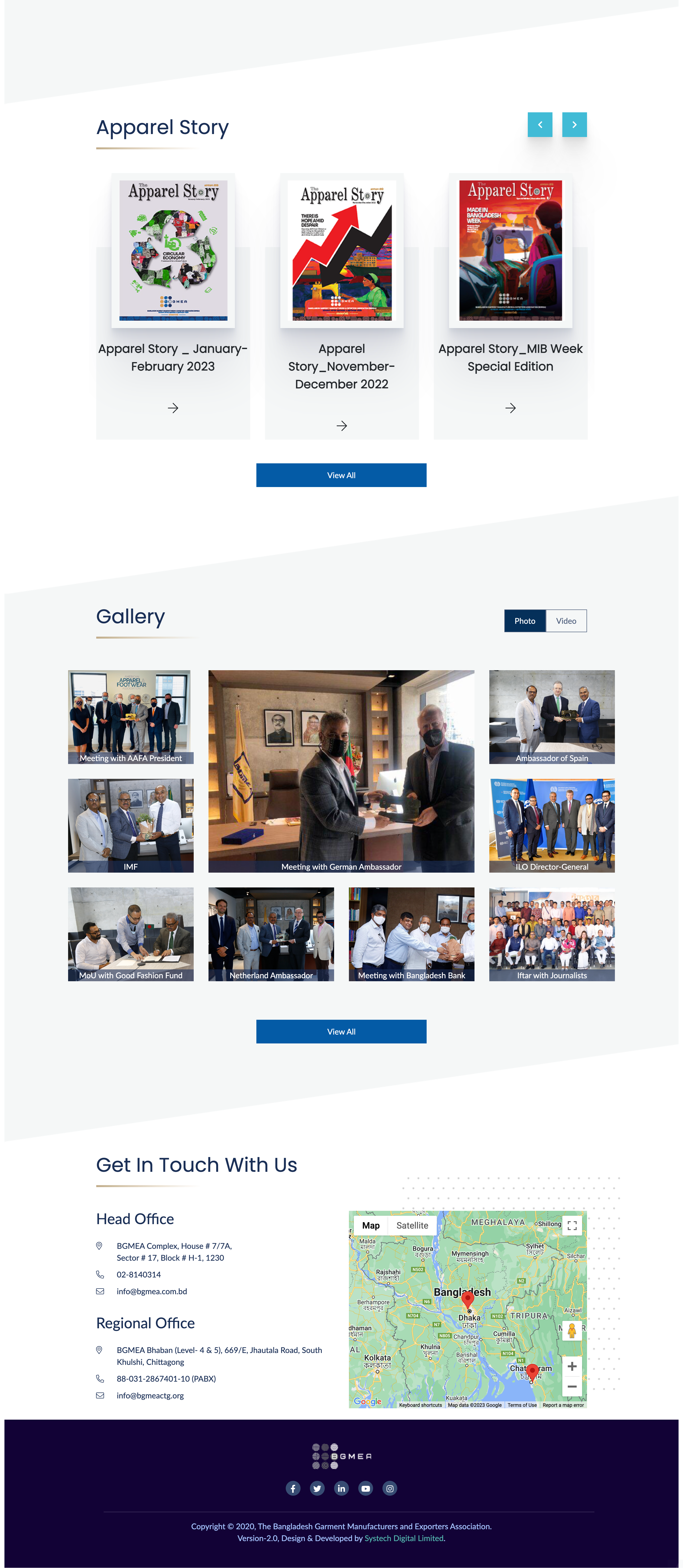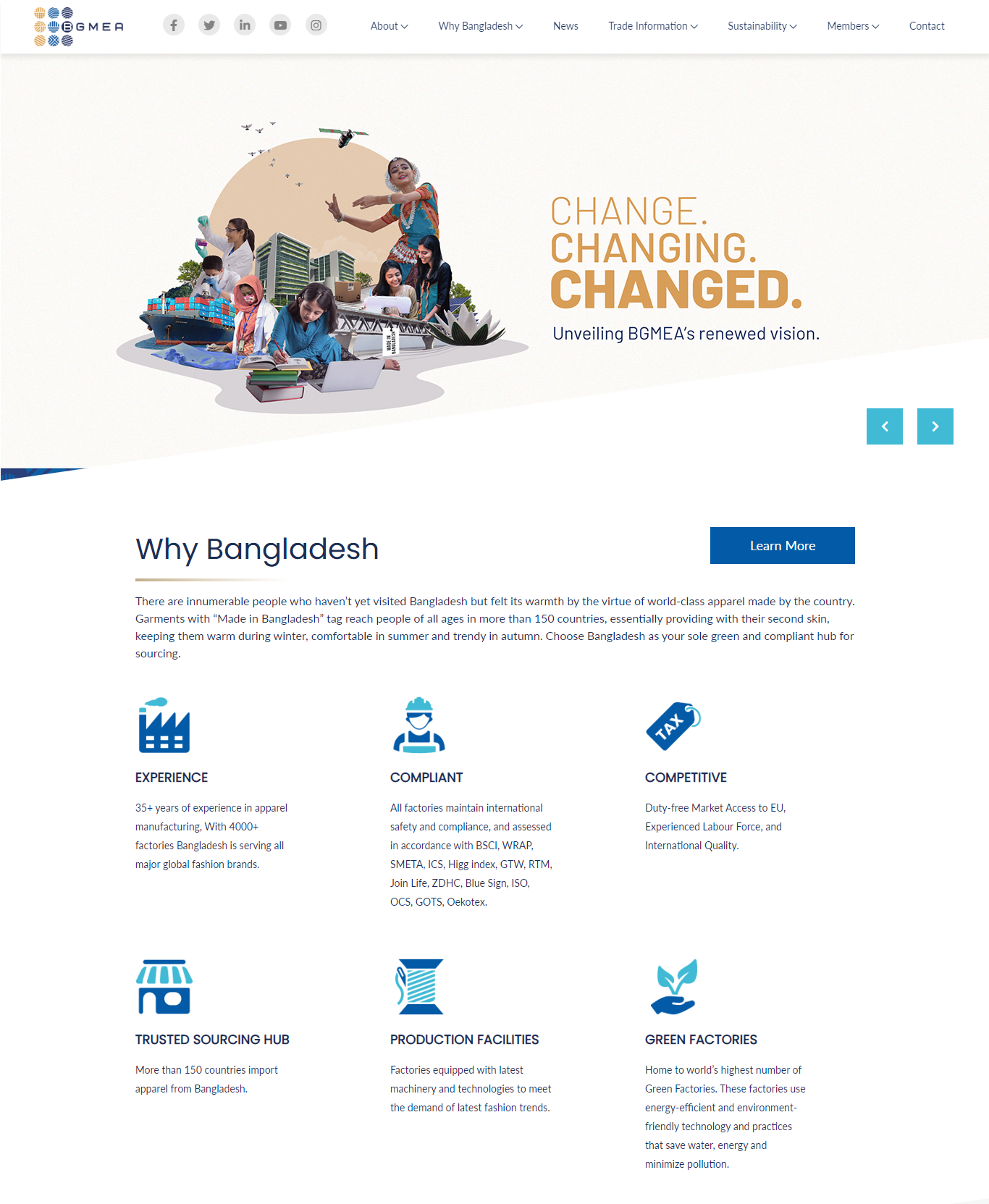 The Bangladesh Garment Manufacturers and Exporters Association (BGMEA) is one of the largest trade associations in the country representing the readymade garment industry, particularly the woven garments, knitwear and sweater sub-sectors with equal importance. Starting its journey in 1983 today BGMEA takes care of an industry at the backbone of Bangladesh’s economy. Since its inception, BGMEA has been dedicated to promote and facilitate the apparel industry through policy advocacy to the government, services to members, and ensuring workers’ rights and social compliance at factories. BGMEA collaborates with local and international stakeholders, including brands and development partners to pave the way for the development of Bangladesh apparel industry. Currently, BGMEA has around four thousand registered garment factories.
