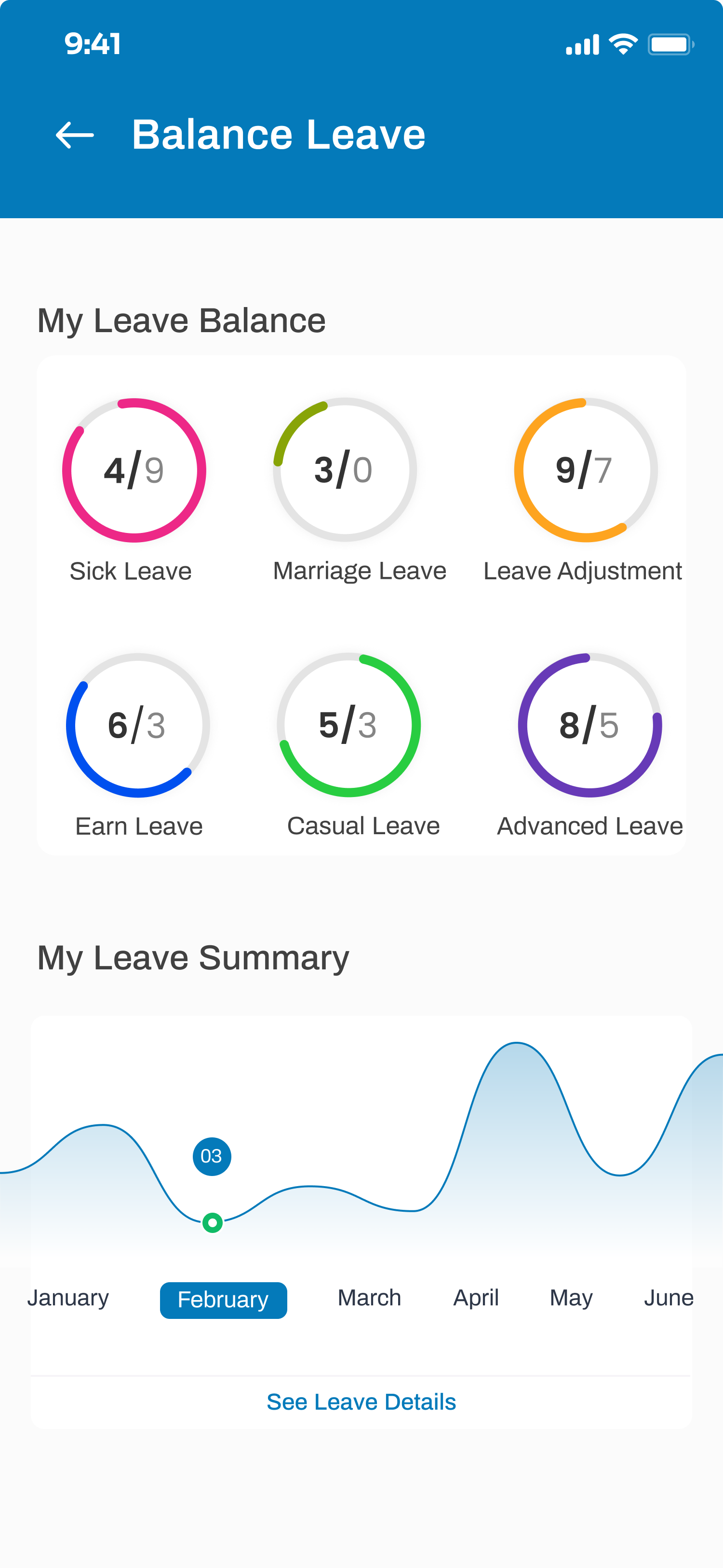 - Your employees’ leave and attendance policy is well managed and monitored through one-click reports.